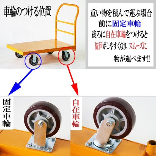 ●後ろに自在車輪を装着できるので、旋回しやすく、スムーズに荷物が運べます。