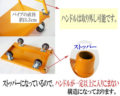 ●上記の画像のようにハンドル部分が容易に取り外せる為、平台車としても使用できます。
