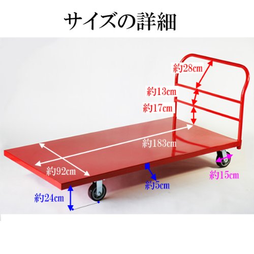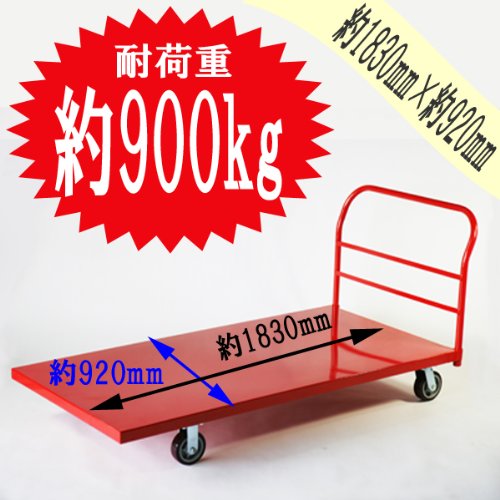 業務用台車 平台車 大型台車 スチール台車 重量台車 耐荷重900kg レッド 1830x920mm