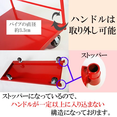 ●上記の画像のようにハンドル部分が容易に取り外せる為、平台車としても使用できます。