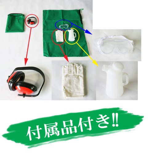 ■上記画像の袋(大)、袋(小)、手袋、耳あて、容器、保護メガネは、付属致しております。替刃が2枚付属致しております。 ●こちらの商品 大型の商品の為、『西濃運輸の営業所留め』となります。あらかじめご了承ください。 ●ご購入後、お客様ご都合による ご返品、ご返金等は一切お受け致しておりません。 ●本商品を使用した際に発生したトラブル、事故に つきまして、当社は一切の責任を負いません。 ご使用に関しましては、全て自己責任にてお願い致します。 ●本製品は海外で製造されています。 部品、パーツの取り寄せには、お時間を頂く場合があります。 ●当方では商品の詳しい説明、メンテナンス、サポートは致しておりませんので、 商品知識のある方のご購入をお願い致します。 ●組立て作業 または パーツ交換等の修理作業につきましては、お客様ご自身でお願い致します。 ●わからない事は、専門知識のある業者の方に ご依頼される事をお勧め致します。