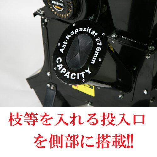 ■側面部分には、76mmまでの枝を粉砕できる枝用粉砕投入口が、あります。