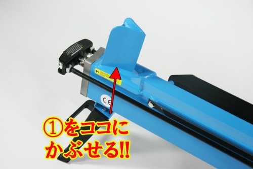 ■こちらの薪割り機は、【始動スイッチ】と【ハンドル】を操作して行います。まず、始動スイッチを押していただき、両方のハンドルを操作してはじめて、刃が動きはじめます。
