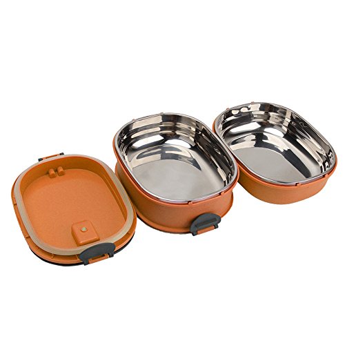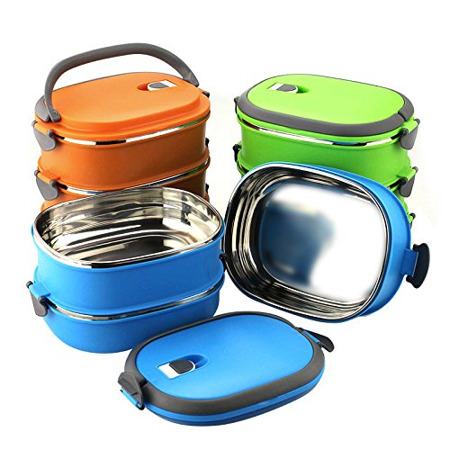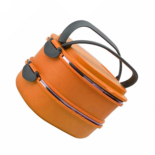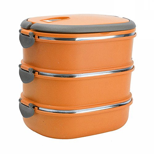 ixaer食品ストレージコンテナ、断熱材熱ランチボックスステンレススチール食品ストレージコンテナポータブル弁当ボックスwithハンドル、3層 オレンジ
