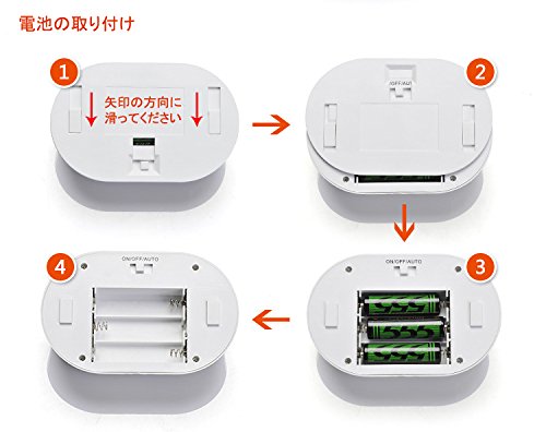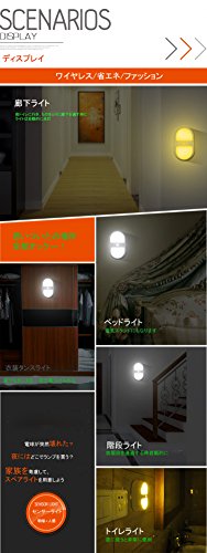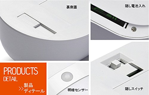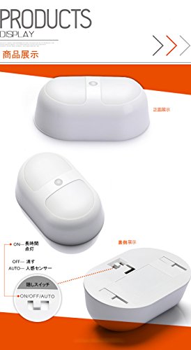 - 【製品機能紹介】①敏感な動作感知機能を持っています。3メートル以内でも検測でき、点灯します。②10個のLEDランプがあって、しかも研磨の処理をした外殻で、明るくて優しく光っています。 ③センサーライトと連続照明モードの、二つのモードを選択できます。 ④動作を感知して点灯から15秒して電源が切ります。 ⑤両面テープでご自由に設置しできます。