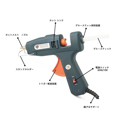 グルーガン プロ中大型 グルーガン60/100W 2段切替 高温タイプ 温度調整 熱傷保護カバー5枚付き 高品質 グルースティック20本付属 強力粘着 接着剤 DIY工具 手芸用 プラスチック用