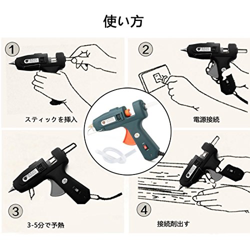 - 【急速加熱】ホットグルーガンは60/100Wのダブル電源スイッチのデザインを採用され、加熱のスビードが急速で、(予熱時間は3―5分程度)、工芸作成のニーズに合わせて、ワット数を調整することができ、DIYクラフトや工業にも大活躍のアイテムです。