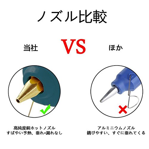 - 【安全性】溶融トリガ式押出装置で接着剤の出る量を調節するので、グルースティックをかなり節約できます。溶融温度250℃可能な高品質の絶縁ノズルで、長時間使用しても、ガンの形状が安心してください。