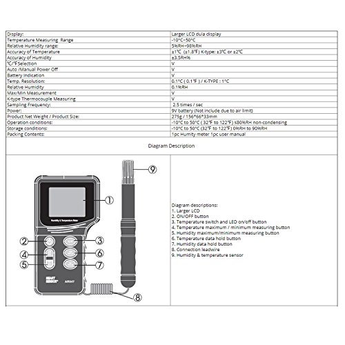 デジタル温度計 湿度計 2in1 Kタイプ 温度湿度計測 熱電対温湿度計 湿度温度センサ AR847