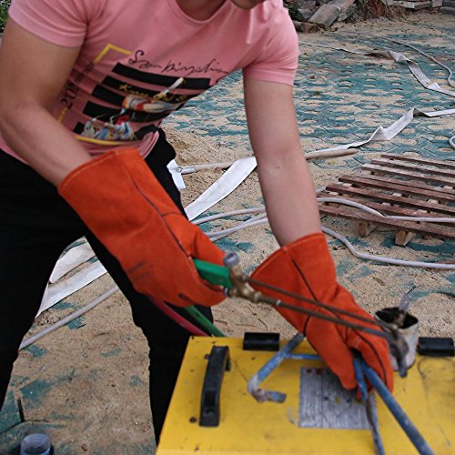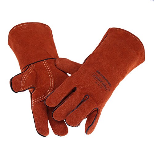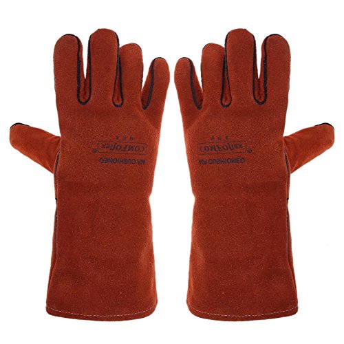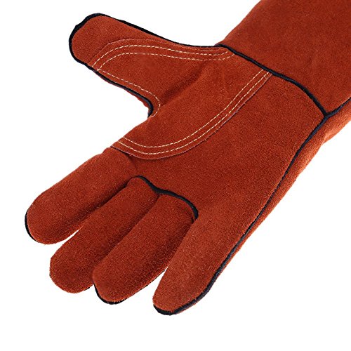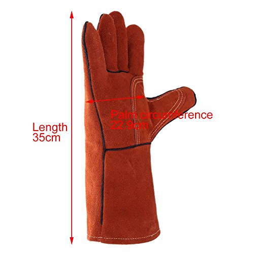 k-outdoor 耐熱グローブ 保護手袋 電気溶接 高熱作業 バーベキュー キッチン 牛革 レッド