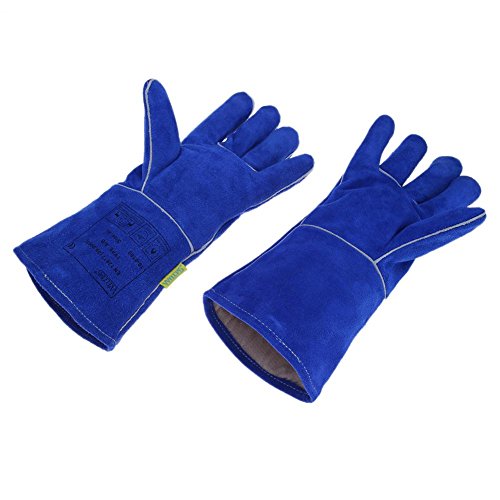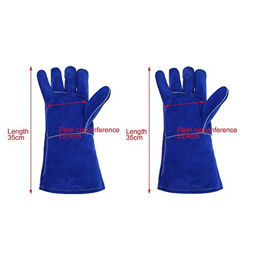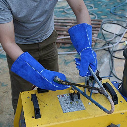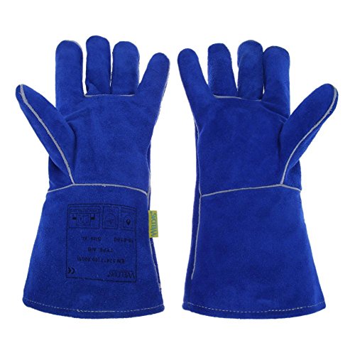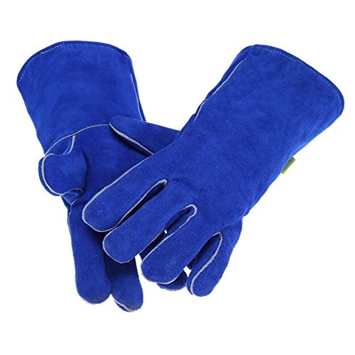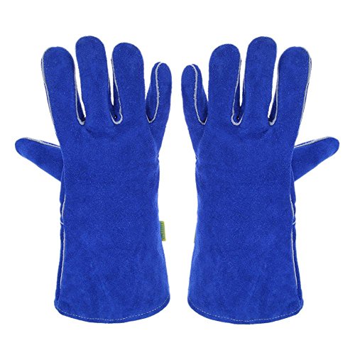 k-outdoor 耐熱グローブ 保護手袋 電気溶接 高熱作業 バーベキュー キッチン 牛革 ブルー