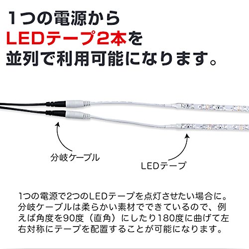 1つの電源からLEDテープ2本を並列で利用できるケーブルです。