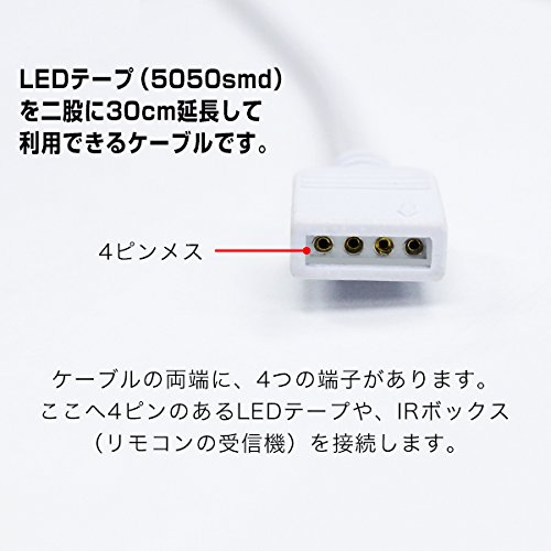 LEDテープ用 30cm 延長ケーブル 4ピン メス 2分岐 2股 / 分岐 / 延長コネクタ12V RGB 5050SMD用 延長 / コネクタ / コネクター / 5050 / SMD 電設 電設用 コネクタ ケーブル