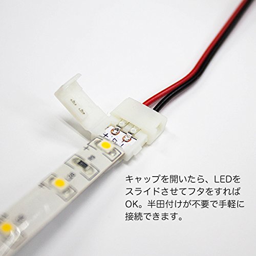 LEDテープの中間を空けたいときに便利。テープの「プラス」「マイナス」をスライドして接続するだけ。
