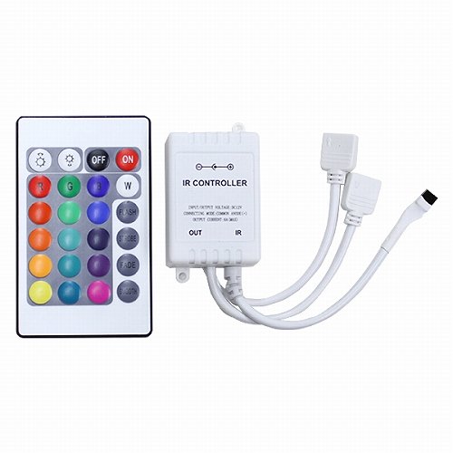 LEDテープのRGBマルチカラー対応(5050SMD)を調節出来ます。明るさ、フラッシュなど点灯パターンの変更ができます。さらに、分岐で最大2本を制御できます。