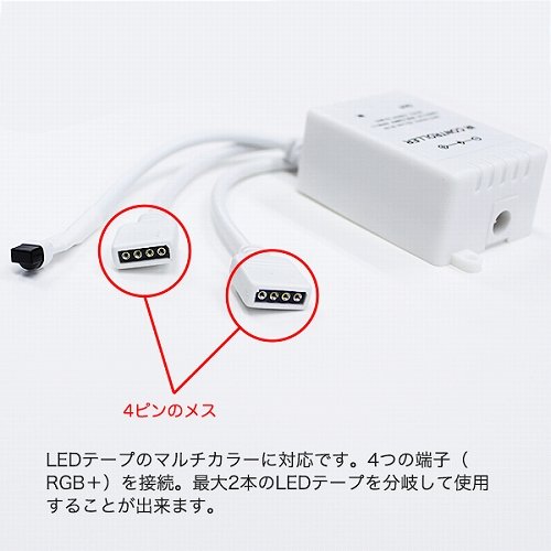 LEDテープ用 リモートコントローラー 2分岐対応 RGB マルチカラー / リモコン / DCジャック / コントローラー / 制御 / 2分岐 / 分岐 / 受信機 / コネクタ / 4ピンメス / 12V / RGB / 5050SMD / コネクター / ユニット / 調光器 / 5050 / SMD