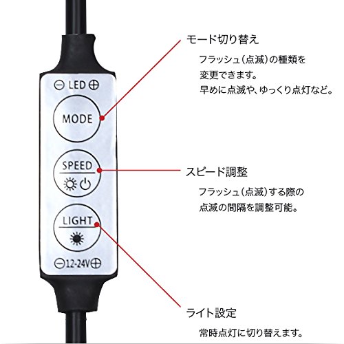 LEDテープの単色系(3528SMDまたは5050SMDのホワイトや、電球色など)をこれで制御出来ます。明るさ、フラッシュなど点灯パターンの変更ができます。