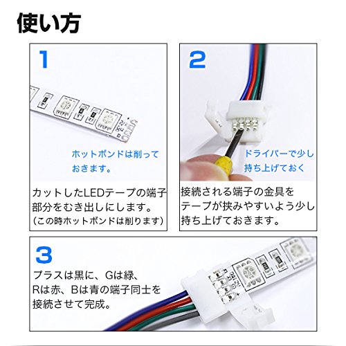 カットされたLEDテープ同士を接続します。設置する場所のコーナーや点灯させずに繋げたいだけの時に便利です。
