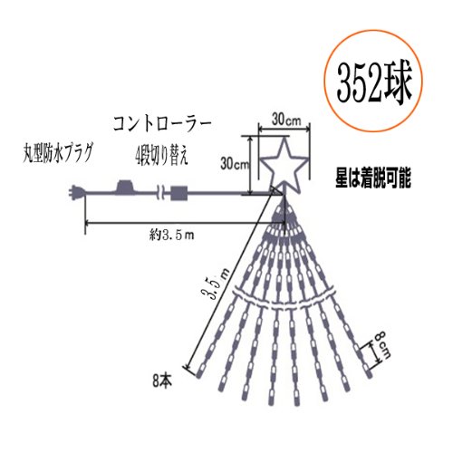 - LED球数:352球、星部は着脱可能