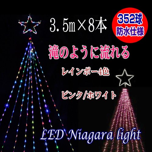 イルミネーション ナイアガラ ネットライト ドレープライト イルミネーションライト (レインボー) ガーデンライト 3.5m8本 滝 カーテンライト クリスマス ツリー