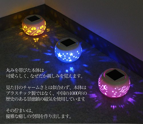 見た目の可愛らしさとは裏腹に、本体は1000年以上の歴史のある中国の「景徳鎮」の磁器を使っています。そのため上品な雰囲気のある照明ライトとして、とてもよい雰囲気になります。