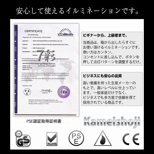 品質:CE , PSE , RoHS 【第三者機関認証商品】
