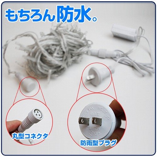 LED部分はもちろん、コード、コントローラー、コネクタ、電源プラグまで防水仕様です。ケーブルが透明に近いから、ライトの電球の色に染まります。コードの色が目立たず、お好みのライトの色を際立たせます。