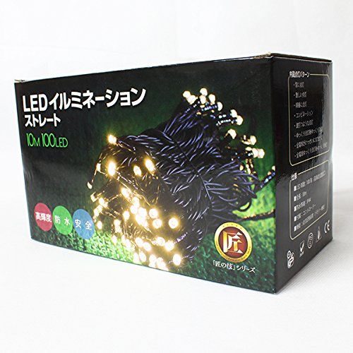 電光ホーム イルミネーション ストレート 10m 100球 ホワイト ブラックケーブル