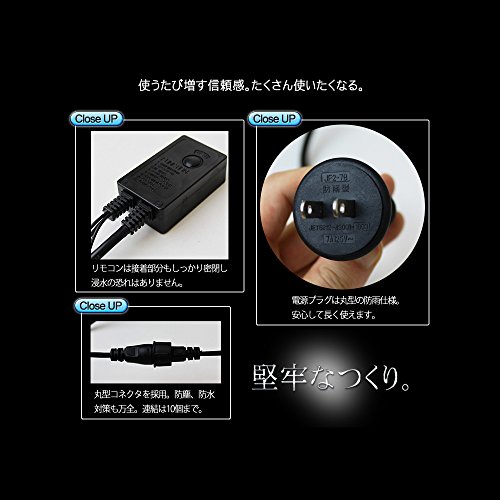 安全志向設計。LED部分はもちろん、コード、コントローラー、コネクタ、電源プラグまで防雨仕様。