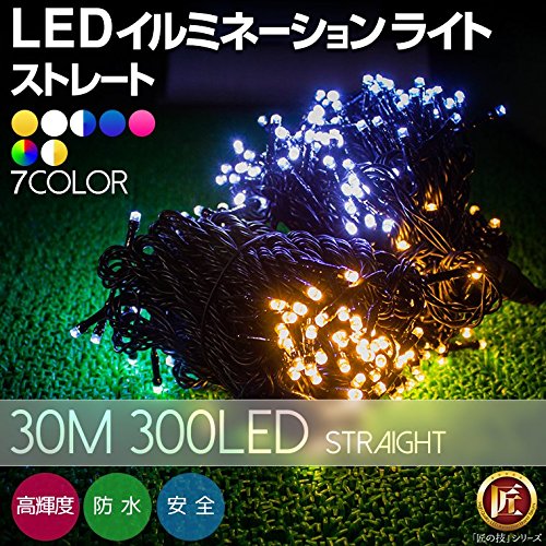 匠(電光ホーム) イルミネーション ストレート 30m 300球 クリアケーブル (レインボー 防雨型 屋外