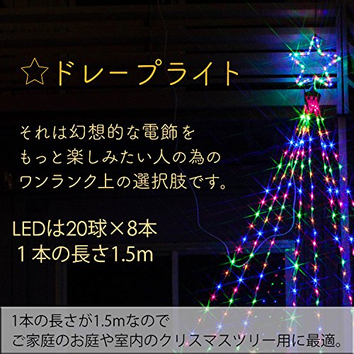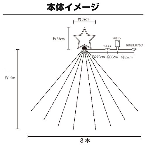 - LED球数:ドレープ160球、星30球(星型モチーフと本体は固定された一体型です)