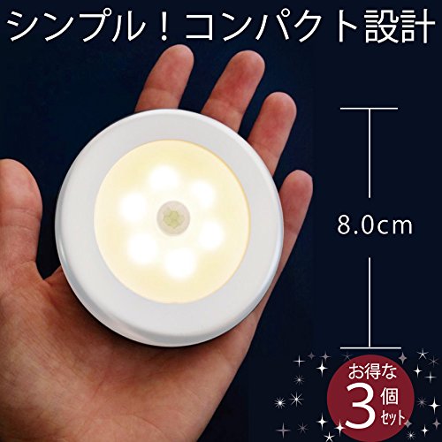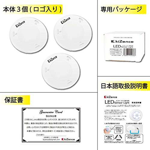 kizence LEDセンサーライト 屋内用 防犯 電池式 室内 マグネット 小型 3個セット (昼白色)