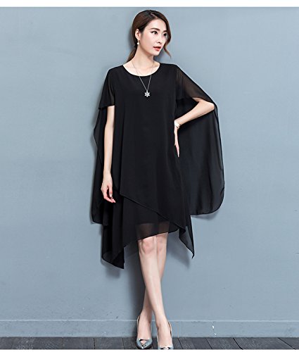 [ココチエ] パーティードレス フォーマルワンピース ドレス ロング 結婚式 袖あり(XL, ブラック)