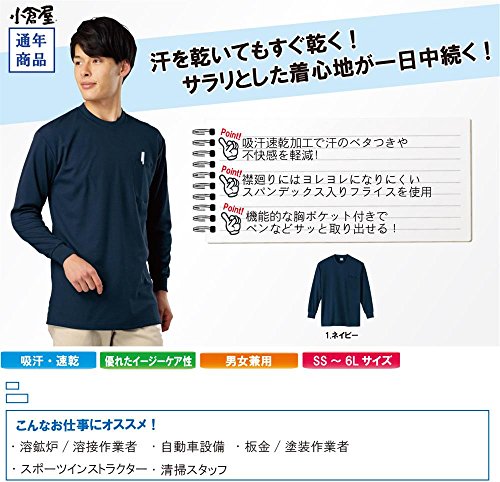 小倉屋 DRY 長袖Tシャツ ポケット付き 9013-1 ネービー 6L