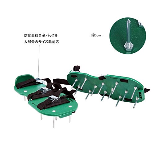 - 芝生の土の軟化・透水性通気性の向上・根の活性化に効果があります。使い方はバンドでしっかり靴に装着して、芝生の上を歩くだけ。