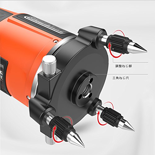 - 本体の傾きを3°以内に調整することができる、3本の脚に高さを調整することの出来る調整リングが付いており、本体の気泡管を見ながら、それを調整することにより、本体の傾きを3°以内に調整することが出来ます。