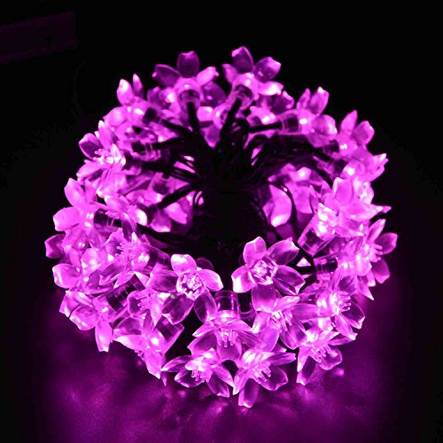 (リーダーテク)lederTEK 太陽エネルギ桃花形防水ストリング・ライト ピンク電飾,6.4m長さ,50ランプ,2輝きモデル,クリスマス飾りの明かり,屋外や庭や部屋や結婚型やクリスマス・ツリーや新年やパーティーに似合う装飾品
