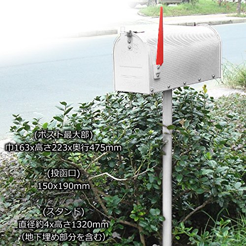- 【サイズ】(ポスト最大部)巾163x高さ223x奥行475mm (投函口)150x190mm (スタンド)直径約4x高さ1320mm(地下埋め部分を含む)