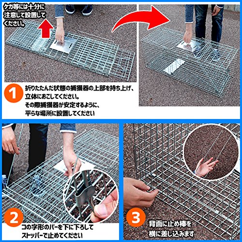 - 注意:動物の虐待目的には絶対使用しないでください。有害駆除などの限定使用(管理できる私有地での農作物や、家畜の被害を防ぐ)は認められています。(使用する目的により許可が必要な場合があります。)保護動物を誤って捕獲した場合は、速やかに放獣してください。
