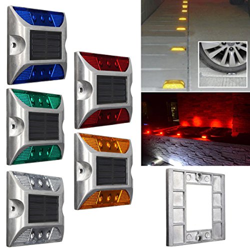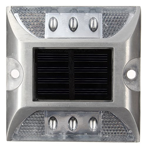 LIGHTBOY ソーラー 式 充電式 自動 点滅 鋲 路肩 鋲 道路 鋲 6 LED 付き 【 耐重量 30トン 】 アルミ合金 【 省エネ 】【 耐久性 】【 低温性能 】-ホワイト