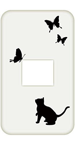 sslink コンセント スイッチ プレート (猫&蝶/ブラック) カスタム カバー 交換用 1穴用 1口