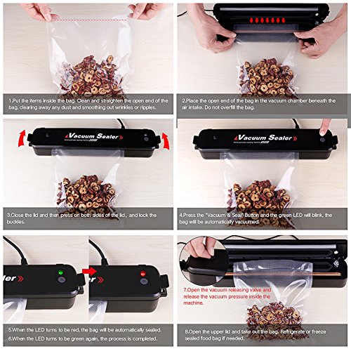 - ◆【多機能】:半真空パック、密封パック、シール機能もできる。新鮮なお肉、果物、ナッツ、野菜や軽食などに使えるだけではなく、手紙、雑誌、文物、精密機械の部品、薬品、重要なファイル、貴金属、その他の物品も保護します。