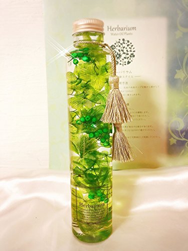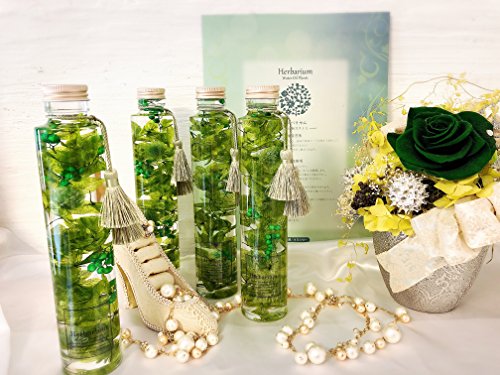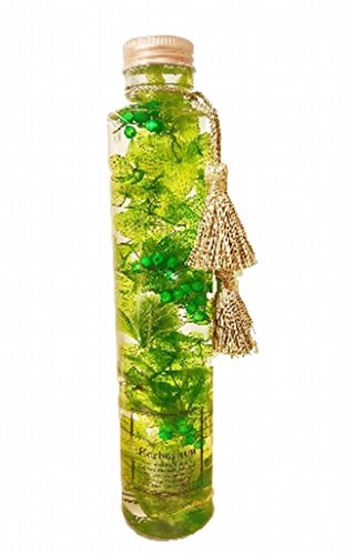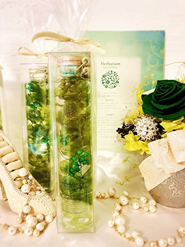 【Angelique】ハーバリウム 丸瓶 ロングボトル タッセル付き ボトルサイズ直径45mm 高さ215mm Herbarium (グリーン)