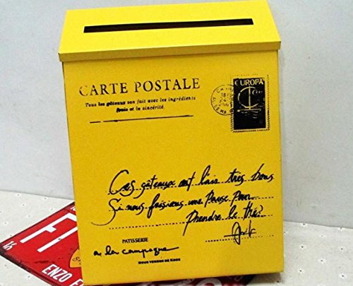 macaroni(マカロニ) アンティーク 風 壁掛け 式 薄型 ポスト 英字 レター デザイン カラフル メール ボックス (イエロー)
