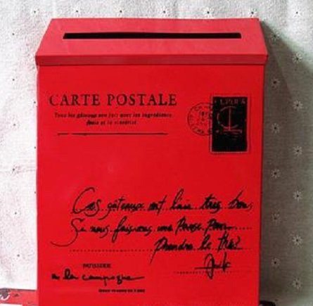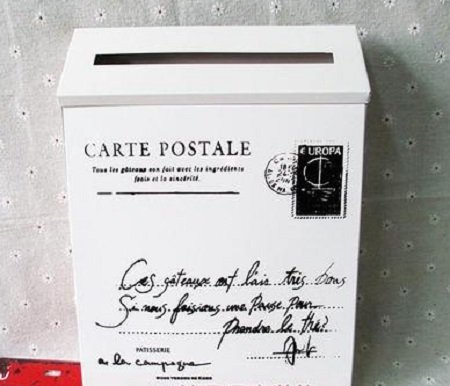 アンティーク風デザインのカラフルな壁掛けポストです。
