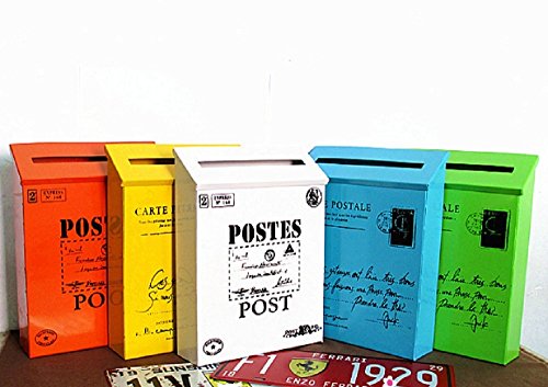- アンティーク風デザインのカラフルな壁掛けポストです。
