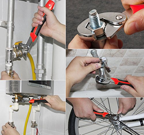 万能 レンチ 大小2本セット ゴムグリップ 配管工事に (2本セット)
