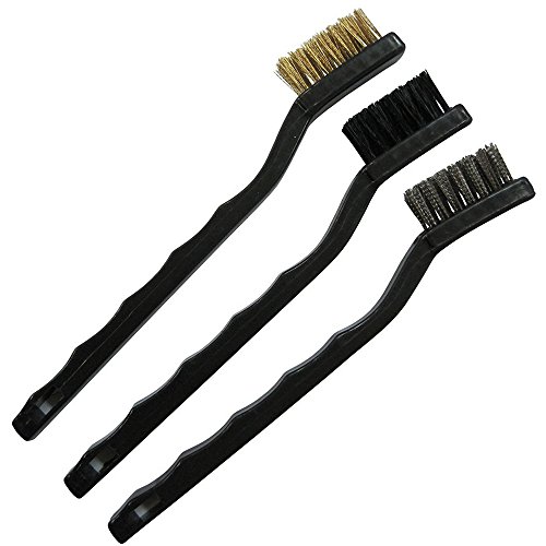 ワイヤー ブラシ 3本組 スモール サイズ ゴム 手袋 付き 大 掃除 コンロ エンジン 回りにも (3)