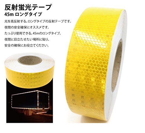 反射 蛍光テープ 車 夜間 安全 ロング ステッカー 幅 5cm 長さ 45m (0.5×45 m, イエロー)