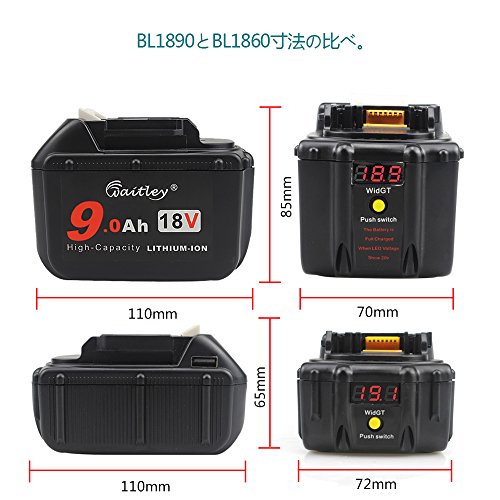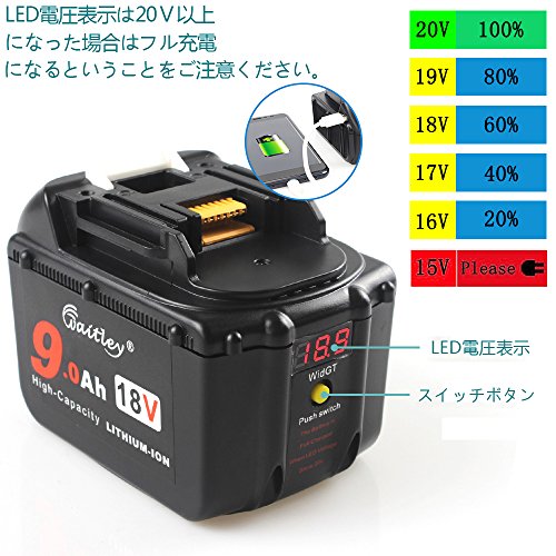 マキタ BL1830 18V 互換 バッテリー 9.0Ah Makita BL1890 9000mah 大容量電池 LED残量表示 USB充電可能 DC18RC DC18RA 急速充電